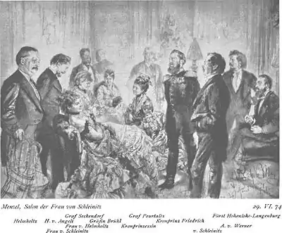 À partir de 1865, Marie von Schleinitz ouvre un salon littéraire à Berlin qui bientôt devient fameux dans tout le pays. Entre 1886 et 1903, elle tient aussi un salon à Saint-Pétersbourg et à Paris, dus aux postes diplomatiques de son deuxième mari. Son salon berlinois est l'un des plus brillants de son époque, dû au charme et à la beauté de son hôtesse aussi bien qu'à ses qualités intellectuelles et émotionnelles. Aussi, elle attire rapidement, non seulement des hommes d'État, mais aussi des artistes, écrivains et surtout des musiciens; pas seulement des aristocrates, mais aussi des bourgeois intéressés aux arts et à la philosophie. Bien qu'elle appartienne elle-même à l'ancienne noblesse prussienne, Mimi s'acquitte de tous les préjugés de son état, n'acceptant aucun autre critère pour être admis à son salon que l'esprit pour le vrai et le sentiment pour le beau. Grâce à son engagement protecteur, son salon devient le centre du wagnérisme allemand. Parmi ses habitués, se trouvent beaucoup de compositeurs et de peintres, mais aussi des officiers appréciant les beaux arts et des députés du Reichstag. Son salon devient aussi un foyer du libéralisme bien isolé au milieu de la société bismarckienne de Berlin, où la plupart des aristocrates et des officiers suivent des idées exclusivement conservatrices et ne s'intéressent que peu aux arts et aux lettres.