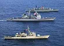 - des forces de surface (porte-avions, porte aéronef, porte-hélicoptères, croiseurs, destroyers ou frégates, bâtiments amphibies, bâtiments de guerre des mines, bâtiments de soutien – ravitailleurs, navires ateliers…, patrouilleurs et vedettes). D'autres navires existaient tels que les cuirassés et les croiseurs de bataille, mais l'apparition des porte-avions mit fin à leur règne ;
