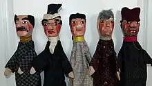Spécifique à l'île indonésienne de Java, il utilise des marionnettes à tiges et met essentiellement en scène des récits tirés du Mahabharata et du Ramayana, mais aussi des récits épiques ou satiriques d'influence islamique[29]. Le théâtre de marionnettes occidental moderne a été grandement influencé par les formes théâtrales asiatiques que l'Europe découvrait, en particulier lors des grandes expositions universelles de la fin du XIXe et du XXe siècle.