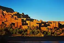 Le Maroc se compose de zones montagneuses ou désertiques, et il est un des seuls pays — avec l'Espagne et la France — à comporter des rivages sur la mer Méditerranée d'un côté et l'océan Atlantique de l'autre. Sa population est de près de 37 millions d'habitants en 2023 et sa superficie de 446 550 km2[22] (76,84 hab./km2), ou de 710 850 km2 en incluant le Sahara occidental[23],[24] — ex-« Sahara espagnol », considéré comme un territoire non autonome par l'Organisation des Nations unies[1] — dont il administre de facto environ 80 % et qu'il revendique dans sa totalité, tout comme le Front Polisario sous le nom de République arabe sahraouie démocratique. Sa culture est arabo-berbère depuis plusieurs siècles et s'est étendue principalement au Maghreb et dans le Sud de l'Espagne.