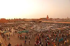 Le mot français « Maroc » est dérivé du nom de Marrakech[26]. Ce dernier est probablement issu du berbère *Amur n Yakuš, où amur a pour significations « part, lot, promesse, protection »[27] et Yakuš (et ses variantes Yuš et Akuš) signifie « Dieu »[28].
