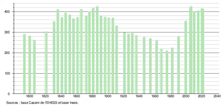 - Fiches Insee - Populations légales de la commune pour les années 2006, 2007, 2008, 2009, 2010, 2011, 2012, 2013, 2014, 2015, 2016, 2017, 2018, 2019, 2020 et 2021.