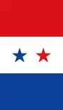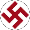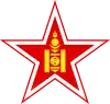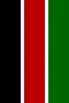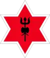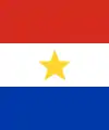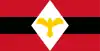 Cocarde jaune cerclé noir, Un rectangle divisé en 2 parties verticale et angles coupé en quart de cercle intérieur: haute noire, basse rouge, une étoile jaune au centre. | |