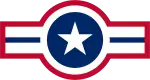 Cocarde : deux losanges : centre bleu, extérieur blanc borduré rouge, avec une aile stylisée blanche bordurée bleu de chaque côté. Elle est surnommée "le losange ailé". Dans sa version basse visibilité les couleurs sont grises et le blanc évidé. | |