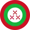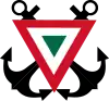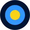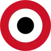 Ancienne cocarde: triangulaire, pointe vers le bas, orange bordé noir. Servait d'identifiant de neutralité au début de la Seconde Guerre mondiale. |