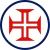 Cocarde reprenant le drapeau national: en 3 bandes verticales: haut et bas en rouge, centre en bleu avec un disque blanc.