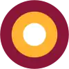 Cocarde en 5 cercles: du centre vers l'extérieur: rouge (petit), blanc, bleu (plus large), blanc, rouge. | |