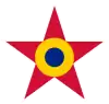 Cocarde en 3 cercles: centre rouge avec une étoile jaune, milieu blanc, extérieur vert.