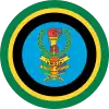 Cocarde en 2 cercles: centre vert, extérieur blanc avec inscriptions arabe.