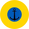 Image 1: Fuselage: Cocarde: Cercle bleu dans cercle jaune. Image 2: Dérive: Cocarde en écu: bleu borduré jaune, au centre un trident jaune stylisé. Image 3: Fuselage: Cocarde de l'aéronaval: Cercle bleu avec une ancre noire dans cercle jaune.