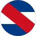 Cocarde en 3 bandes horizontales: haut et bas en bleu centre en blanc, le tous traversé par une bande rouge en travers (de haut/gauche à bas droite) |