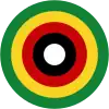 Cocarde en 3 cercles: centre noir, milieu blanc avec une étoile verte en haut, extérieur rouge.