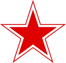 Cocarde en étoile: rouge bordurée blanc liserée rouge. Ancienne cocarde de l'U.R.S.S réutilisée depuis son éclatement en 1992 jusqu'en 2010 et depuis 2013.