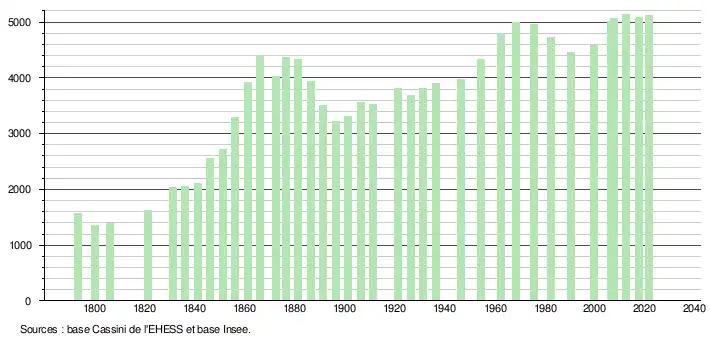 - Population municipale légale en vigueur au 1er janvier 2024, millésimée 2021, définie dans les limites territoriales en vigueur au 1er janvier 2023, date de référence statistique : 1er janvier 2021.