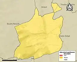 Le retrait-gonflement des sols argileux est susceptible d'engendrer des dommages importants aux bâtiments en cas d’alternance de périodes de sécheresse et de pluie. La totalité de la commune est en aléa moyen ou fort (44,5 % au niveau départemental et 48,5 % au niveau national). Sur les 124 bâtiments dénombrés sur la commune en 2019, 124 sont en aléa moyen ou fort, soit 100 %, à comparer aux 75 % au niveau départemental et 54 % au niveau national. Une cartographie de l'exposition du territoire national au retrait gonflement des sols argileux est disponible sur le site du BRGM[19],[Carte 2].