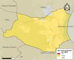 La commune est vulnérable au risque de mouvements de terrains constitué principalement du retrait-gonflement des sols argileux[16]. Cet aléa est susceptible d'engendrer des dommages importants aux bâtiments en cas d’alternance de périodes de sécheresse et de pluie. 98,8 % de la superficie communale est en aléa moyen ou fort (90 % au niveau départemental et 48,5 % au niveau national). Sur les 338 bâtiments dénombrés sur la commune en 2019, 338 sont en aléa moyen ou fort, soit 100 %, à comparer aux 83 % au niveau départemental et 54 % au niveau national. Une cartographie de l'exposition du territoire national au retrait gonflement des sols argileux est disponible sur le site du BRGM[17],[Carte 2].