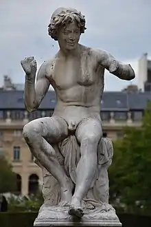 - Paris, musée d’Orsay : Homme tenant un oiseau, ou Jeune homme agaçant un émerillon, statue en bronze sur socle bleu turquin[14] ;