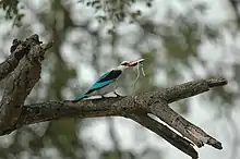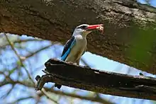 Le martin-chasseur du Sénégal chasse depuis un perchoir dégagé (par exemple depuis une branche morte).