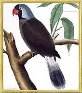 On trouve le mascarin à l'île de Bourbon ; j'en ai vu plusieurs vivants à Paris ; c'étaient des oiseaux assez doux ; ils n'avaient en leur faveur que leur bec rouge qui tranchait agréablement sur le fond sombre de leur plumage ; ils n'avaient pas appris à parler[26].