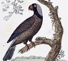 Il est un peu plus gros que le Perroquet cendré de Guinée. Sa longueur depuis le bout du bec jusqu'à celui de la queue est de treize pouces six lignes, & jusqu'à celui des ongles de douze pouces trois lignes. Son bec, qui a seize lignes d'épaisseur, a depuis son crochet jusqu'aux coins de la bouche quinze lignes de long ; sa queue quatre pouces six lignes ; son pied onze lignes ; le doigt extérieur de devant, joint avec l'ongle, un pouce dix lignes, l'intérieur quinze lignes & demie ; l'extérieur de ceux de derrière un pouce sept lignes & demie, & l'intérieur onze lignes. Il a deux pieds quatre pouces de vol ; & ses ailes, lorsqu'elles sont pliées, s'étendent environ jusqu'aux deux tiers de la longueur de la queue. La base du bec est entourée de plumes noires, qui forment une bande de cinq ou six lignes de largeur. Les parties supérieures de la tête & du col sont d'un cendré clair. Le dos, le croupion, la partie inférieure du col, la poitrine, le vendre, les côtés, les jambes, les plumes scapulaires, les couvertures du dessus et du dessous des ailes, & celles du dessus & du dessous de la queue sont d'un cendré très-foncé. Les plumes de l'aile sont de la même couleur. La queue est composée de douze plumes : les deux du milieu sont aussi d'un cendré très-foncé : toutes les latérales sont de la même couleur, excepté qu'elles ont un peu de blanc à leur origine. Les yeux sont entourés d'une peau nue, d'un rouge vif : leur prunelle est noire ; & leur iris est rouge. La base du demi-bec supérieur est aussi entourée d'une peau nue & rouge, dans laquelle les narines sont placées. Le bec est pareillement rouge. Les pieds sont de couleurs de chair pâle ; & les ongles sont d'un gris-brun. J'ignore dans quel pays on le trouve. Je l'ai vu vivant à Paris[18].
