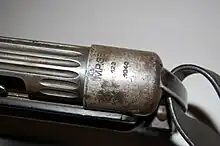 - Sous le canon se trouve un appendice en aluminium qui servait à prendre appui sur le rebord d'un véhicule ou par les meurtrières de celui-ci sans risquer que le recul n'entraîne l'arme à l'intérieur lors du tir. On peut également imaginer que ce renfort en aluminium participe aussi au refroidissement du canon[1].