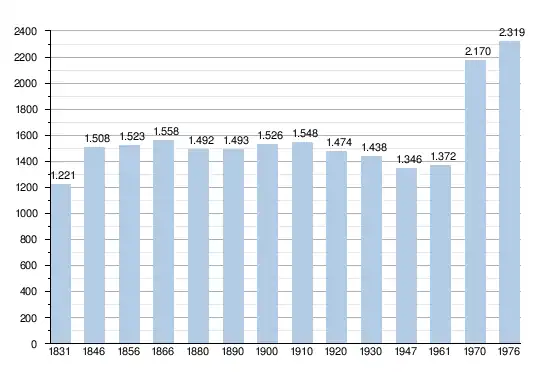 - Sources : INS, Rem. : 1831 jusqu'en 1970 = recensements, 1976 = nombre d'habitants au 31 décembre.