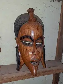 - Le bangogui: un masque sans caractère rituel, il est utiliser après la récolte, les jeunes filles et garçons se réunissent autour de ce masque, pour également tisser des fiançailles, composer de raphia et mythique. il a la possibilité de changer de formes et de tailles au fil de la danse[1].