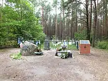 Sur le site du massacre dans la forêt, il y a quatre monuments. Le premier, un monument polonais de l'ère communiste, ne contient aucune référence aux Juifs. Les deuxième et troisième ont été érigés par des Juifs américains. Le quatrième, érigé grâce aux efforts d'Abraham Kapice, a la forme de l'étoile de David et est inscrit en hébreu afin que les écoliers israéliens puissent le lire[8].