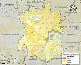 Le retrait-gonflement des sols argileux est susceptible d'engendrer des dommages importants aux bâtiments en cas d’alternance de périodes de sécheresse et de pluie. 43,7 % de la superficie communale est en aléa moyen ou fort (15,8 % au niveau départemental et 48,5 % au niveau national). Sur les 692 bâtiments dénombrés sur la commune en 2019, 488 sont en aléa moyen ou fort, soit 71 %, à comparer aux 14 % au niveau départemental et 54 % au niveau national. Une cartographie de l'exposition du territoire national au retrait gonflement des sols argileux est disponible sur le site du BRGM[19],[Carte 1].