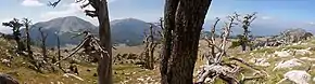 Sur le côté ouest, poussent, éparpillés sur les pentes pierreuses escarpées, le pin de Bosnie et une espèce de genévrier rampant.