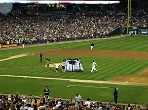 Pour une équipe, le record[20] pour la plus longue séquence sans être victime d'un match sans coup sûr est de 7 920 parties en près de 50 ans : les Cubs de Chicago frappent au moins un coup sûr à chaque match entre le match parfait réussi contre eux par Sandy Koufax le et la partie sans coup sûr de Cole Hamels à Chicago le [21]. Le précédent record, battu en 2010, appartenait aux Yankees de New York, qui n'avaient pas été victimes d'un match sans coup sûr en 44 ans et 264 jours, soit du au [22].