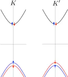 Le couplage spin-orbite fournit une grande division de spin dans la bande de valence et indique le degré de liberté de spin. Quant au graphène, donne à la vallée un degré de liberté - que ce soit près de la ou point de la zone hexagonale de Brillouin. Les monocouches de dichalcogénure de métal de transition sont souvent discutées en référence à des applications potentielles en valleytronics.