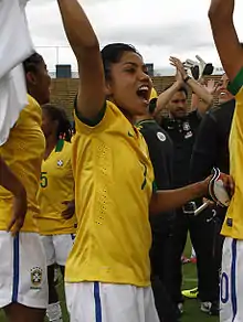 - (pt) Clara Velasco et Heloisa Brenha, « Considerado amador, futebol feminino leva atletas da seleção a jogar sem salário », Folha de S. Paulo, (lire en ligne, consulté le )