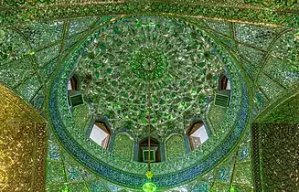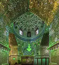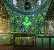 Le sanctuaire actuel a été construit au XIXe siècle, après les destructions causées par divers séismes. La particularité de cet endroit est le dôme en oignon, typique du style architectural de Chiraz, les décorations intérieures réalisées avec des fragments de miroirs vénitiens. La porte d'entrée finement décorée est également d'une grande valeur.