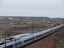La LGV Atlantique, qui dessert le Grand Ouest, s'arrête avant Le Mans jusqu'en 2017, les TGV poursuivant leur trajet en Mayenne puis en Bretagne roulent alors sur une ligne classique. Afin de remédier à cette situation et de réduire les temps de trajet, Réseau ferré de France lance la construction de la LGV Bretagne-Pays de la Loire, qui s'étend du Mans jusqu'à Rennes; elle est inaugurée le [16]. La Mayenne est traversée d'est en ouest par cette nouvelle LGV qui s'aligne parallèlement à la ligne classique de Paris-Montparnasse à Brest.
