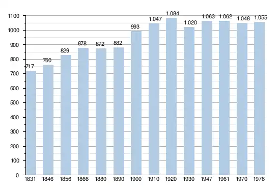 - Sources : INS, Rem. : 1831 jusqu'en 1970 = recensements, 1976 = nombre d'habitants au 31 décembre[2].