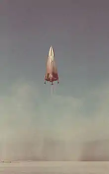 Il décolle verticalement comme une fusée standard, mais atterrit aussi à la verticale, pointe en haut. Cette conception utilise des propulseurs de contrôle d'attitude et des rétrofusées pour contrôler la descente, permettant à l'engin de commencer sa descente le nez en avant, puis d'effectuer une manœuvre de retournement pour se pose sur ses pieds d'atterrissage à sa base. L'engin peut être ravitaillé en carburant là où il a atterri, et prendre un nouvel envol à partir de la même position - une caractéristique permettant des délais entre utilisations sans précédent.