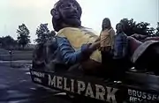La décennie 1970 métamorphose les vingt hectares du site de La Panne en véritable parc d'attractions. Bobbejaanland inaugure en 1968 un petit monorail du constructeur Schwingel comme première attraction mécanique[22],[N 4]. À Meli Park, un monorail du constructeur Schwingel est inauguré en 1973. Les montagnes russes du Scarabée déchaîné constituent l'un des symboles du parc. Toujours en fonction à Plopsaland, elles sont considérées comme le plus ancien circuit de montagnes russes encore en activité en Belgique[23],[24]. Ouvert dès 1976, il est le premier circuit tivoli large avec Keverbaan à Attractiepark Slagharen[25]. Le spectacle de perroquets est également inauguré en 1976. Ce numéro renforce l'un des deux thèmes de prédilection du parc : le règne animal. Dans la deuxième moitié des années 1970, l'essor d'autres parcs de loisirs tels que Walibi à Bierges et Bobbejaanland à Lichtaert entraîne de nombreuses modifications sur le site pannois. La direction désire étoffer le nombre d'attractions. Aux attractions sédentaires construites à Adinkerke s'ajoutent les manèges itinérants de type forain en provenance du Meli Heysel. C'est le cas de la Roue géante et ensuite du Bateau Pirate. Le , un incendie détruit le restaurant et le bâtiment principal une semaine avant l'ouverture de l'Apirama le [2]. Cette attraction de type parcours scénique devient rapidement la plus célèbre de Meli Park. Son ouverture au public est possible grâce à une collaboration d'équipes anglo-germano-belges[26], entre autres Metallbau Emmeln et Keith Sparks Associates (Keith Sparks (en) et Robin Golding). Apirama reprend le principe du walkthrough sur les abeilles La Ruche Merveilleuse de Meli Heysel pour en faire une tout autre attraction bien plus aboutie. La mascotte du parc, l'abeille Meli, est créée la même année[1]. Le carrousel à chevaux provenant de Meli Heysel prend place à La Panne également en 1979.