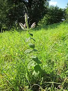 La tige dressée ou ascendante[n 1], à section carrée, velue, est ramifiée pyramidalement[9].
