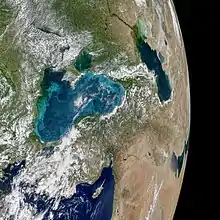 Le pourtour de la mer Noire est caractérisé par un climat quasi endémique appelé « climat pontique » : on parlera donc d'écorégion à son propos. C'est une variante transitionnelle du climat tempéré, avec des caractéristiques méditerranéennes, mais aussi continentales au nord (climat drossopontique à l'été méditerranéen et à l'hiver continental) et subtropicales humides au sud (climat eupontique)[20]. Le climat drossopontique est assez frais et sec en Bulgarie, Roumanie, Ukraine et nord-ouest de la Crimée ; le climat eupontique est plus doux et humide dans le sud-est de la Crimée (péninsule de Kertch), autour de Sotchi en Russie, en Abkhazie, en Colchide (Géorgie) et surtout dans la région pontique de la Turquie[21]. Ce climat pontique est propice à une forte productivité végétale et c'est pourquoi dès les VIIIe et VIIe siècles av. J.-C. les pourtours de la mer Noire ont été densément colonisés par les Grecs antiques, la région devenant le « grenier à blé » des cités grecques dans sa partie drossopontique propice aux cultures céréalières, et la « réserve de bois » de la marine grecque dans sa partie eupontique en grande partie recouverte de forêts, aujourd'hui encore assez préservées[22]. Cette abondance forestière a tant impressionné les anciens Grecs qu'ils nommèrent les forêts pontiques Amarante, soit, littéralement, « qui ne peut se corrompre »[23].