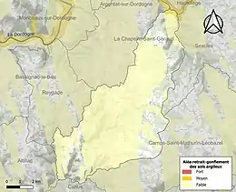 Le retrait-gonflement des sols argileux est susceptible d'engendrer des dommages importants aux bâtiments en cas d’alternance de périodes de sécheresse et de pluie. 0,6 % de la superficie communale est en aléa moyen ou fort (26,8 % au niveau départemental et 48,5 % au niveau national). Sur les 136 bâtiments dénombrés sur la commune en 2019, aucun n'est en aléa moyen ou fort, à comparer aux 36 % au niveau départemental et 54 % au niveau national. Une cartographie de l'exposition du territoire national au retrait gonflement des sols argileux est disponible sur le site du BRGM[17],[Carte 2].