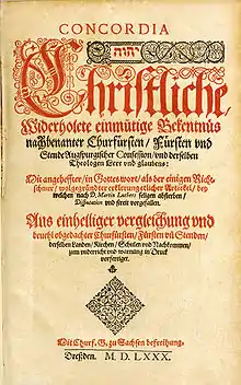 Luther ne souhaite pas a priori davantage « abolir la messe » qu’il ne souhaite révolutionner les traditions de l’Église[35]. Ainsi précise-t-il en 1530, dans le Livre de Concorde (Liber Concordiae), à l'article XXIV de la Confession d'Augsbourg (« De la messe ») :