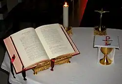 Le déroulement de la messe (ordo missae) et les actions liturgiques sont consignés dans des missels. D'autres livres (évangéliaire, lectionnaire) renferment les textes bibliques lus à la messe selon un ordre propre à chaque rite. Ainsi, dans le rite romain sous sa forme ordinaire, les lectures dominicales s'agencent selon un cycle de trois années (A, B, C), cependant que les lectures de semaine suivent une alternance entre années paires et impaires.
