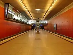 Elle dispose, d'un quai central encadré par les deux voies de la ligne U2[3],[4].