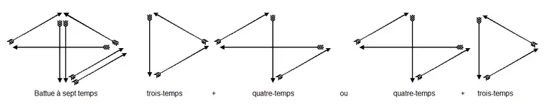 Dans Le chef d'orchestre, théorie de son art, publié en 1855 en appendice de son Traité d'instrumentation et d'orchestration, Berlioz considère que « les mesures à cinq et à sept temps seront plus compréhensibles pour les exécutants si, au lieu de les dessiner par une série spéciale de gestes, on les traite l'une comme un composé des mesures à trois et à deux temps, l'autre comme un composé des mesures à trois et quatre temps ». Il indique ainsi la technique pour battre avec exactitude une mesure à sept temps pour un orchestre symphonique :