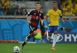 Il marque son premier but en sélection lors de sa troisième apparition contre l’Afrique du Sud, le [51]. Le , dans un match décisif en Russie, il permet à Miroslav Klose d'inscrire le seul but du match et d'envoyer l'Allemagne à la Coupe du Monde.