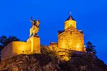 Église de la Dormition de Metekhi et statue équestre de Vakhtang Ier d’Ibérie.