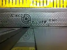 Plaque montrant le logo de la Metropolitan Cammel Carriage & Wagon Company sur une ancienne rame du métro londonien