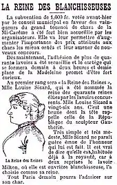 - Quoi qu'il en soit, la reine des reines, celle des blanchisseuses, dont nous publions la photo, est remarquablement jolie.