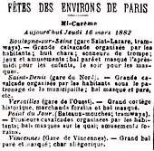 - La Mi-Carême, Le Petit Parisien, 17 mars 1898, page 1, 4e colonne.